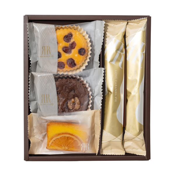 | 内容 | プチケーキ(ベリー・ショコラ&ナッツ×各1個)、オレンジケーキ×1個、ロングキャラメルパイ×2本 |