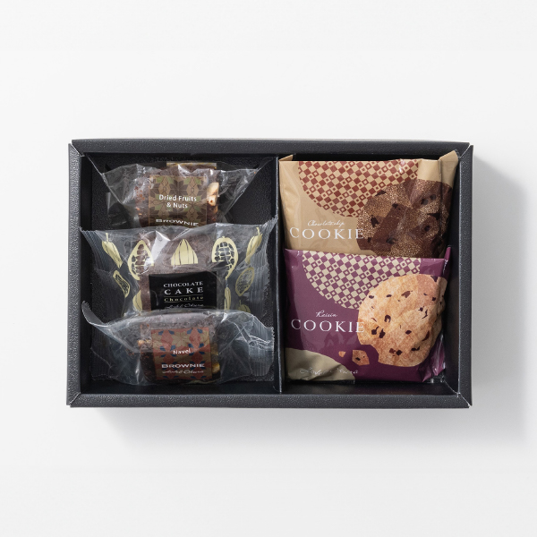 | 内容 | レーズンクッキー・チョコチップクッキー・ブラウニーネーブル・ブラウニードライフルーツ&ナッツ・チョコレートケーキ×各1個 |