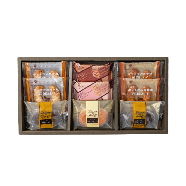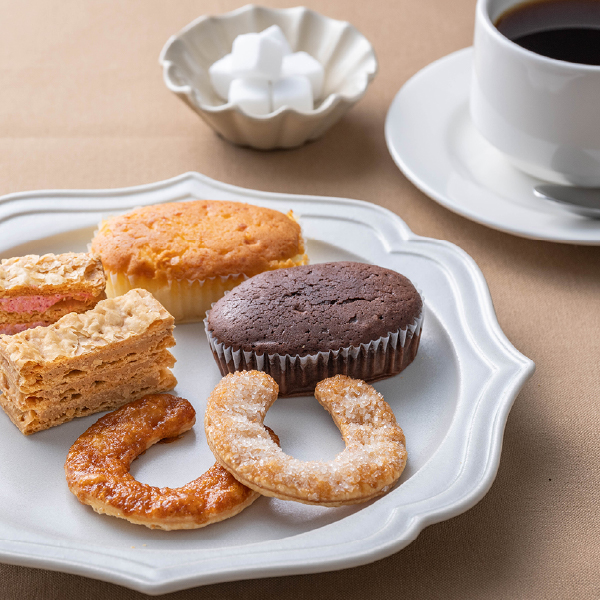 | 内容 | 馬蹄パイ(キャラメル・シュガーバター)・スフレ濃厚ショコラ×各2個、ミルフイユ(キャラメルラテ・フランボワーズ)・スフレ芳醇フロマージュ×各1個 |