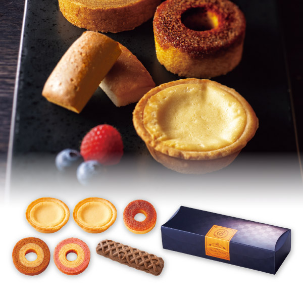 内容 | チーズタルト×2、キャラメリゼバウム(カスタード)×1、ミニバウムクーヘン(キャラメル&ミルク・ストロベリー&ミルク)×各1、チョコスティックワッフル×1 |