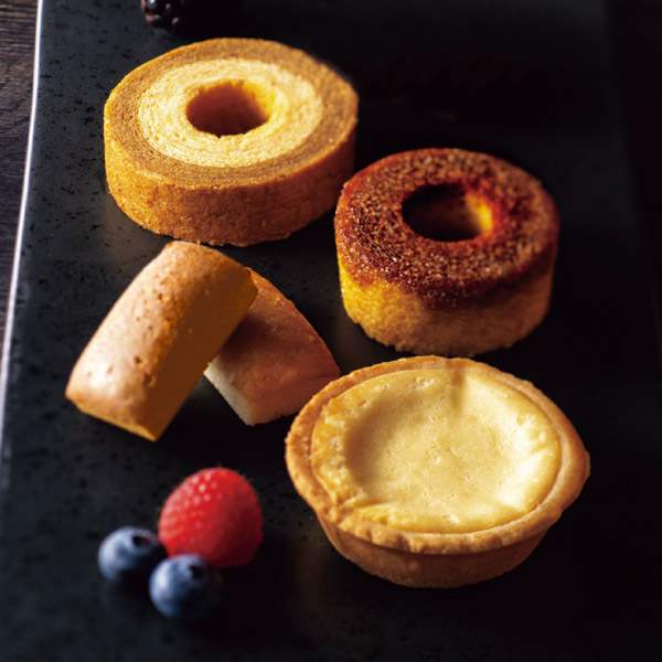 | 内容 | チーズタルト×2、キャラメリゼバウム(カスタード)×1、ミニバウムクーヘン(キャラメル&ミルク・ストロベリー&ミルク)×各1、チョコスティックワッフル×1 |