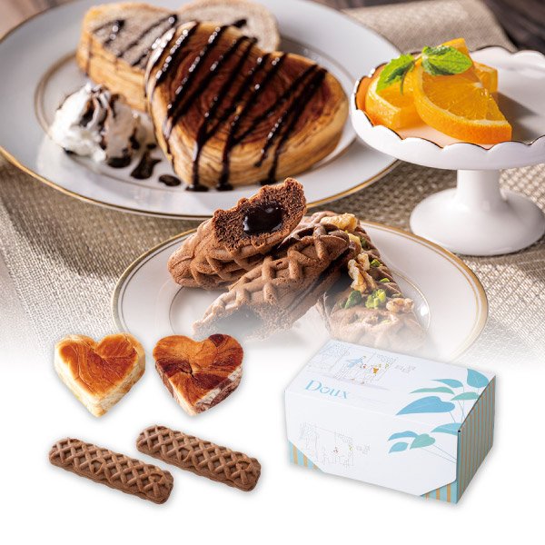 内容 | ハートデニッシュ(メイプル・チョコ)×各1、チョコスティックワッフル×2 |
