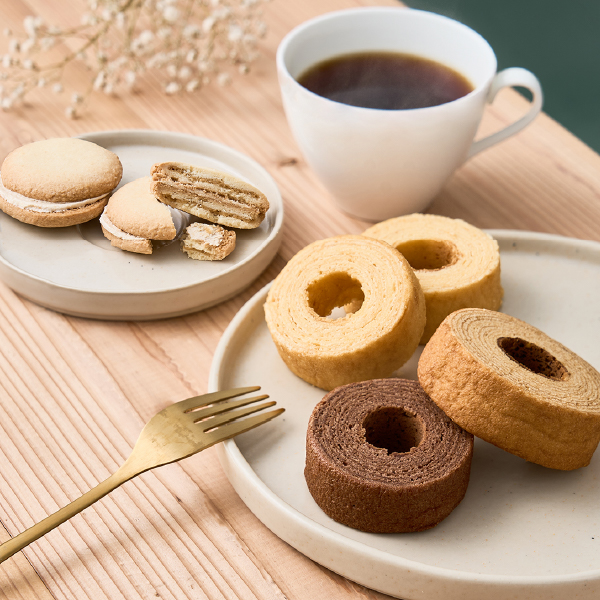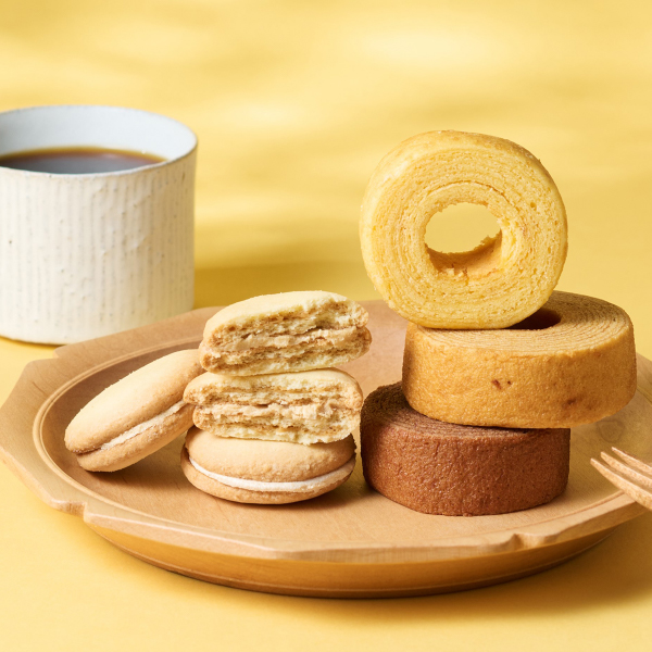 ふんわりとした食感にしっとり優しい甘さのプティバームは、ミルク・ココア・黒糖の味わいをご用意。大人からお子様まで幅広い年齢層にも喜んでいただけます。また、サクサククッキーにメープルクリームとキャラメルクリームを挟んだ7層仕立てのサンドクッキー。1枚の厚みに食べ応えとクリームの心地よい甘さをご堪能いただけます。
