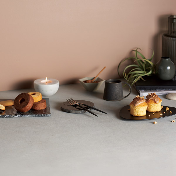 ふんわりしっとりと焼き上げたマフィンケーキはどこか懐かしく、ほっとする美味しさです。ペアリングに見立てたミニバウムやクッキーと一緒にお贈りします。