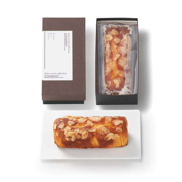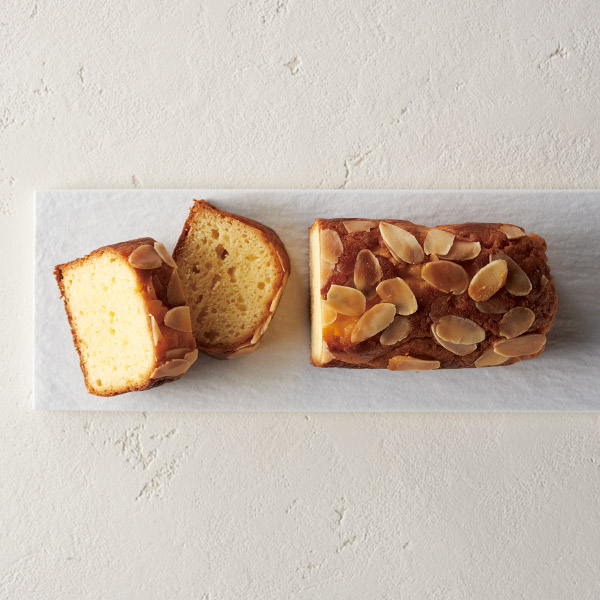 スライスアーモンドをぎっしりとちりばめ、シンプルな素材で焼き上げたしっとりプレーンな生地のパウンドケーキ。素材の持つ美味しさを引き出すようじっくりと焼き上げました。