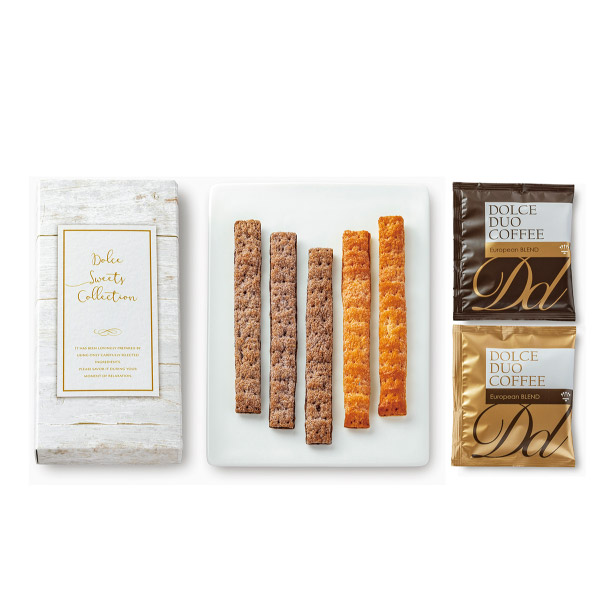 | 内容 | スティックパイ(ショコラ×3本・キャラメル×2本)、ドリップ式レギュラーコーヒー8g×2袋 |