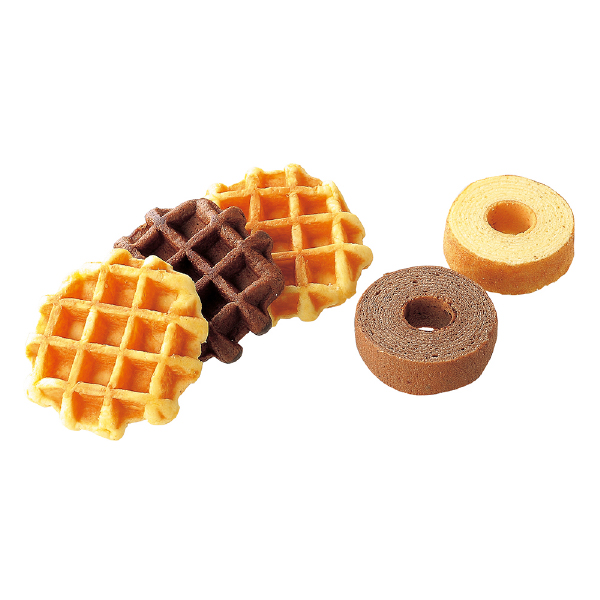 | 内容 | プレーンワッフル×2、ココアワッフル×1、ミルクバーム×1、チョコバーム×1 |
