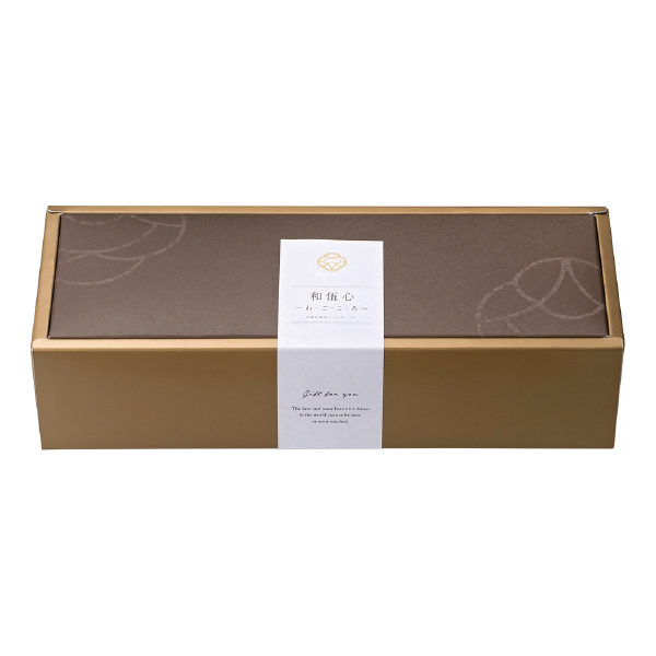 日本らしい贈り物で、この日をもっと印象深い特別な日に。高級感のあるブラウンを主体として、シックながら上品で和を感じさせるパッケージに、黄粉・シナモン・和栗・さつま芋・黒糖の5種類のバームクーヘンを贅沢に詰め合わせました。付属の黒蜜をかければより味わい深くなります。目上の方はもちろん、老若男女問わずお贈りいただけます。