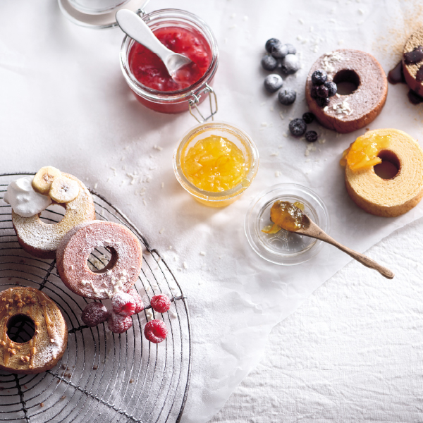 カラフルなお菓子は大人も子供もワクワクさせる。「バームクーヘン」には木が年輪を重ねていくように新郎新婦も末長くともに歳を重ねていけますようにという意味が込められています。栃木県産 とちおとめ苺、山形県産 さくらんぼ、山梨県産 白桃、北海道産 赤肉メロン、沖縄県産 マンゴー、山形県産 ラ・フランス。イロトリドリの幸せカラーを小さなバームクーヘンにまとわせて。「美味しい」と「感謝」の気持ちを一緒に贈ります。