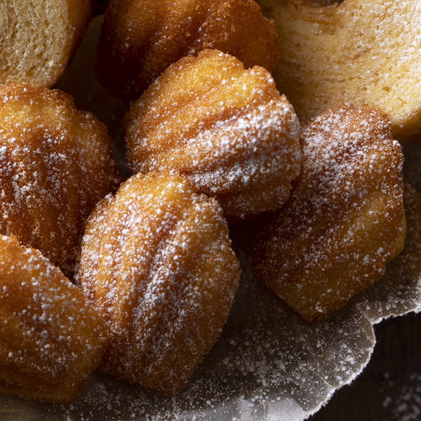 小さなマドレーヌと香り高いコーヒーと紅茶のセットです。自分へのご褒美に、ちょっぴり贅沢なひと時をお楽しみください。