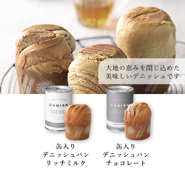 | 内容 | 缶入りデニッシュパン リッチミルク80g×1、缶入りデニッシュパン チョコレート80g×1 |