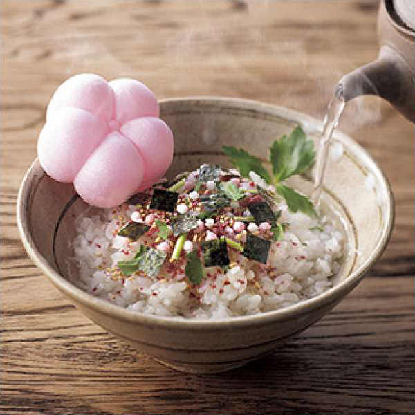 お茶碗に祝の華を添える、お茶漬け。梅は厳しい寒さに耐えてどの花よりも早く花を咲かせ、春の訪れを告げるとして喜びの象徴とされてきました。そんな梅の花をかたどった、お祝い事らしく紅白カラーの愛らしい最中の中に、定番の「さけ」と「うめ」のお茶漬けを包みました。華やかで可愛らしいお茶漬けが食卓をより彩ります。可愛らしさと和を合わせたパッケージは老若男女問わず「美味しい」と「感謝」の気持ちを込めてお贈りいただけます。