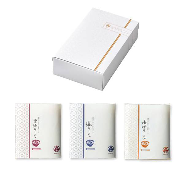 | 内容 | ラーメン(半生麺80g)×3、ラーメンスープ(醤油・味噌・塩)×各1 |