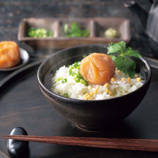 厳選素材で味わうちょっと贅沢なお茶漬け。お店で味わうような本格的なお茶漬けをご家庭で。梅の木が長生きであることから「長寿」の縁起を担いで食されます。梅のように年月を重ねて成熟した夫婦になりますとの想いを込めた、縁起物として人気のギフトです。鮭(レトルト)、しそ漬け紀州南高梅、贅沢茶漬けの素、お茶漬け用の具(刻み海苔、ゴマ・わかめ)を贅沢に詰め合わせました。