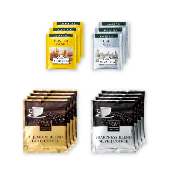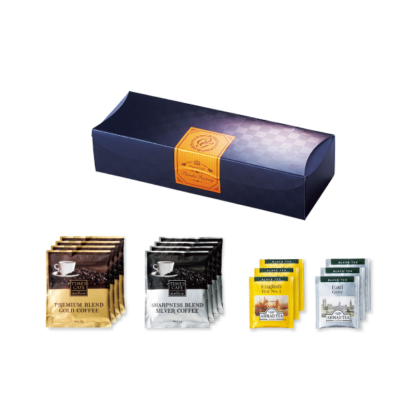 | 内容 | ドリップコーヒー(ブレンドゴールド・ブレンドシルバー)×各4、紅茶(イングリッシュティNO.1・アールグレイ)×各3 |