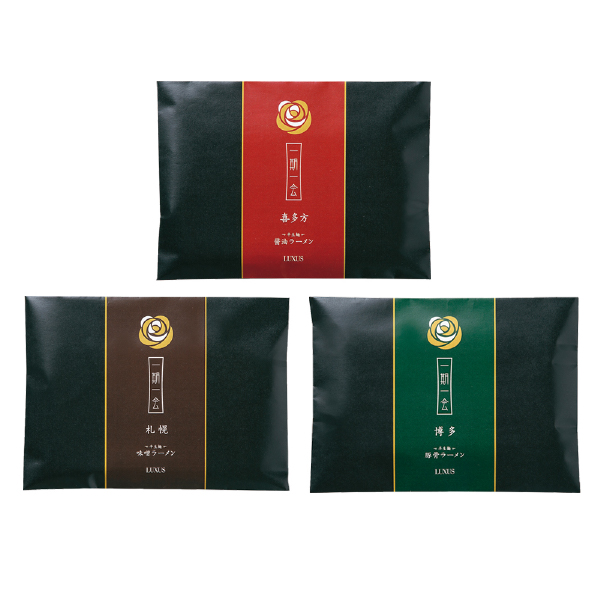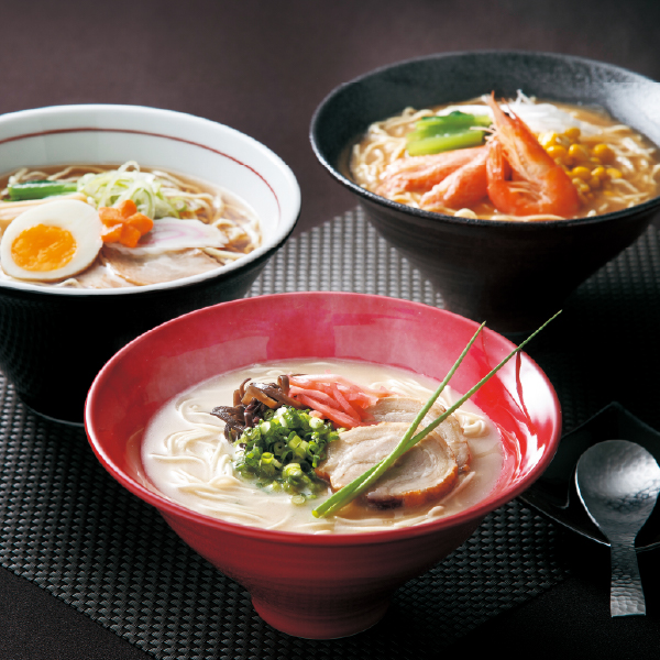 | 内容 | 札幌ラーメン(半生麺、味噌スープ)×1、喜多方ラーメン(半生麺、醤油スープ)×1、博多ラーメン(半生麺、豚骨スープ)×1 |