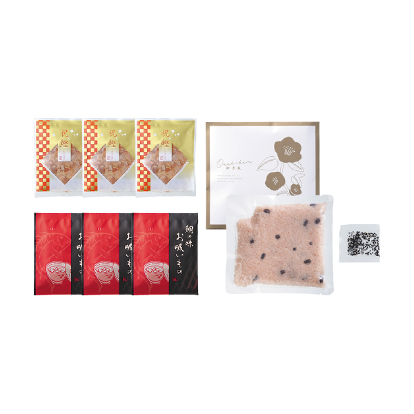 | 内容 | 赤飯180g×1、ごま塩1g×1、鯛の味お吸いもの3.8g×3、鰹節3g×3 |