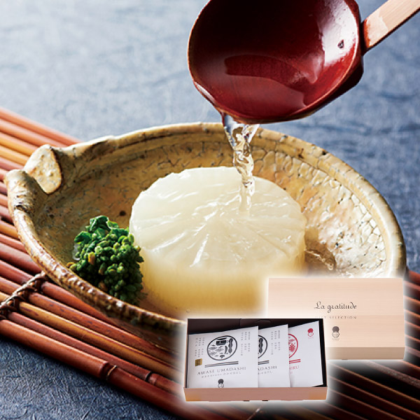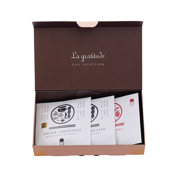 厳選された鹿児島県産本枯節・静岡県産枯鯖節・熊本県産煮干うるめ鰯・北海道産真昆布・宮崎県産香信椎茸・国内産焼飛魚を使ったこだわりの合わせだしとみそ汁のセットです。