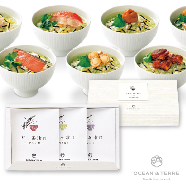 忙しい朝にほっと嬉しい、オーシャンテールのおしゃれで贅沢なだし茶漬け。「紀州南高梅」「ずわい蟹」「あさり」 の和の味わい深い3種類のセットです。ご夫婦で絶品のだし茶漬けを味わえるのはもちろん、お一人暮らしの方にも食べ比べを楽しんでいただけるギフトです。北海道産真昆布を使い、静岡県産抹茶の風味を利かせた、海鮮で旨味を加えた贅沢な逸品。シンプルでおしゃれなパッケージは、どなたにも送りやすいデザインです。