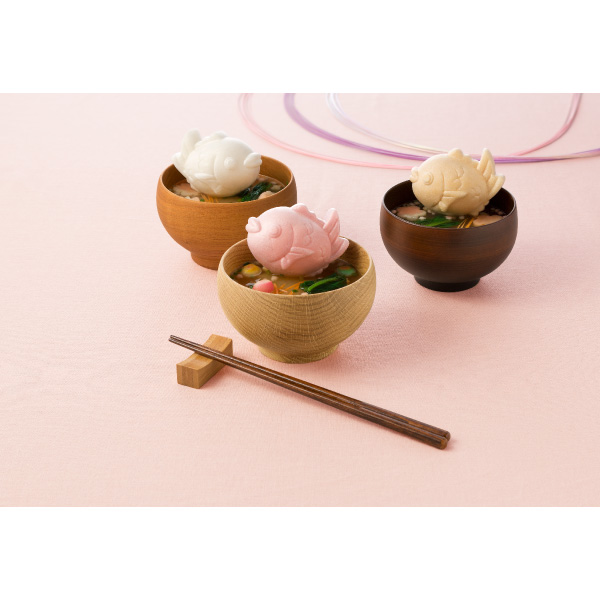 おめで「たい」笑顔を食卓に添えるお味噌汁。「めでたい」に通じる名前を持つことから、縁起のいい魚として愛されてきた鯛。めで鯛最中(赤みそ)、祝い鯛最中(白みそ)、ありがとうのハートふりかけ(紀州南高梅・博多産明太子)、焼津産鰹本枯節削り楽しめるセットとなっております。鯛の文字とイラストをポップにあしらったパッケージに可愛いと感謝の気持ちを込めて。その姿を愛嬌たっぷりにかたどった最中が、食卓に笑顔を届けます。