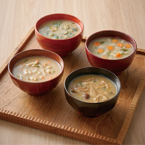 ・ねばねば野菜のお味噌汁×1袋 ・しゃきしゃき根菜のお味噌汁×1袋 ・4種のきのこお味噌汁×1袋 |