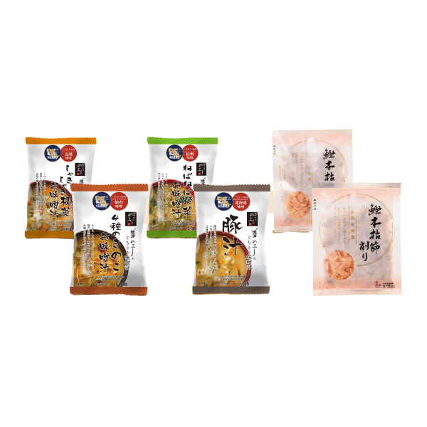 ・4種のきのこお味噌汁×1袋 ・ねばねば野菜のお味噌汁×1袋 ・しゃきしゃき根菜のお味噌汁×1袋 ・焼津産かつお本枯節削り×2袋 |