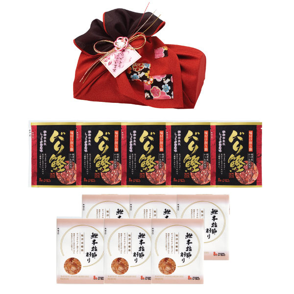 | 内容 | 焼津産鰹本枯節削り×6袋、バリ鰹(味付削り節)×5袋 |