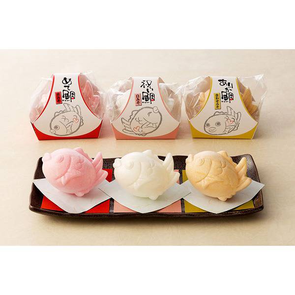 | 内容 | めで鯛最中(赤みそ)×1個、祝い鯛最中(白みそ)×1個、ありが鯛最中(合わせみそ)×1個 |