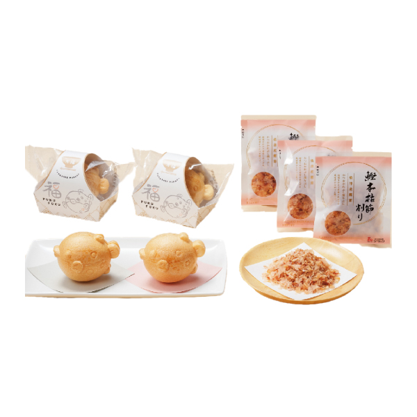 ・万福最中(海苔茶漬け)×1個 ・焼津産かつお本枯節削り×3袋 |
