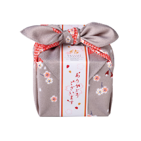 味わい深い逸品を、大人シックで落ち着いた灰色を基調とした、日本が誇る桜もようの風呂敷に包んでお届けします。めでたく結ばれた幸せなお二人から、お二人の門出を祝ってくださった方々へ。香り高いかつおえび煎餅を1袋、お祝い事に欠かせない焼津産鰹本枯節削りを2袋、縁起の良い紀州南高梅1袋を贅沢に詰め合わせました。お二人のこれからと贈る方への感謝の気持ちを込めて。目上の方はもちろん、ご年配の方への贈り物にも最適です。人と人、心と心を結ぶ心躍る贈り物です。
