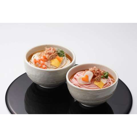 麺類は「良好な人間関係」や「恋愛運が上がる」などの意味があり、縁起のいい食べ物といわれています。うどんのように太い絆に願いを込めて。いつまでも健やかに、末永くよいお付き合いを。さまざまな願いが詰まった紅白の可愛らしいハート型のうどんは、昔ながらの手延べうどんです。濃厚なかつお出汁にお好みの薬味を添えて、独特の歯ごたえと喉越しをお楽しみいただけます。