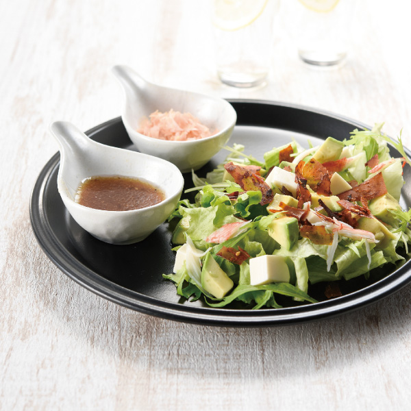 食卓に、風味が満ちる料理の名脇役。鰹節の風味としょうがの香りでさっぱり美味しく。地元焼津産のバリ鰹チップを隠し味に使っています。鰹の風味としょうがの香りの絶妙な組み合わせをお楽しみください。