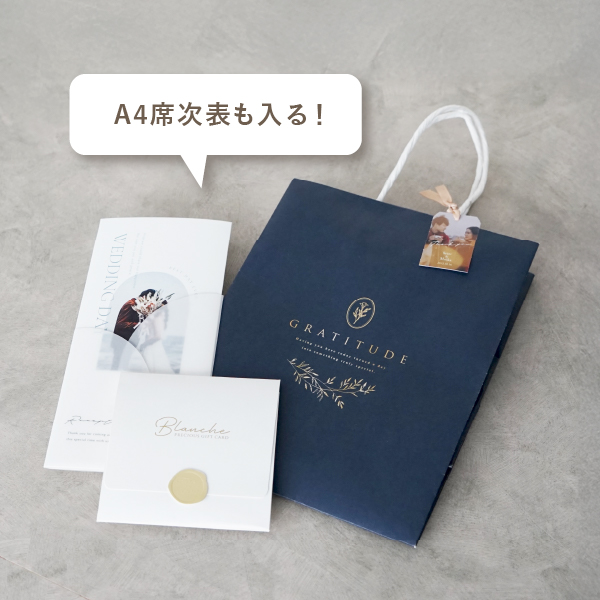 席次表や席札、プチギフトなど挙式当日にお持ち帰りいただく小物を入れるのに最適。