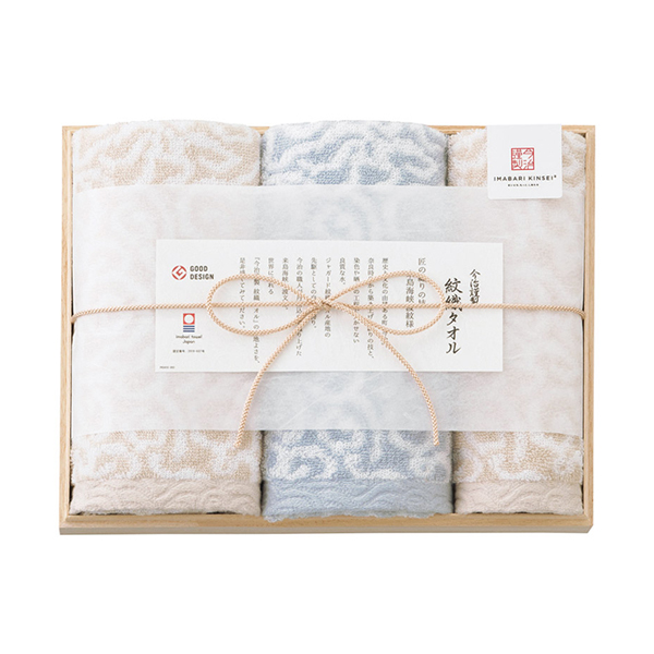 今治日和は、唐草や貝など繁栄や豊かさの象徴とされる伝統柄に子孫繁栄や金運などの意味を持つザクロなどの果実モチーフを組み合わせた和モダンシリーズです。