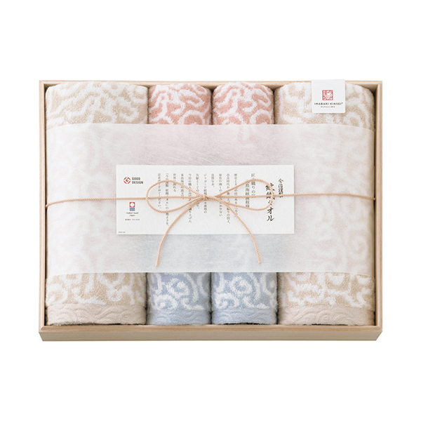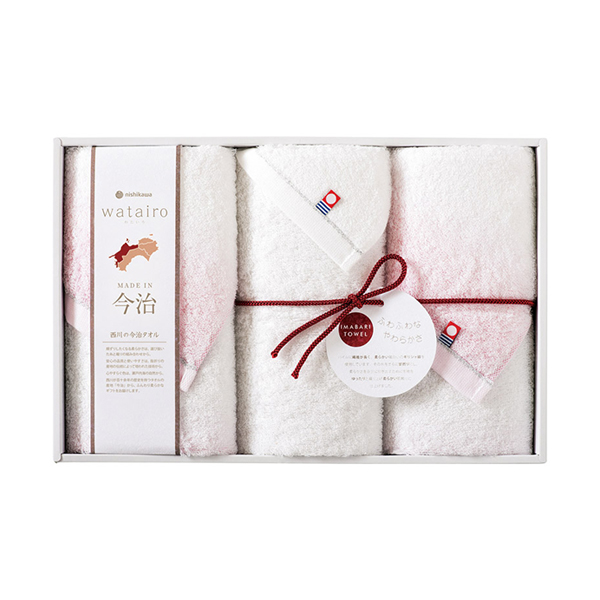 日本では昔からおめでたい時には赤飯を食べ、白餅を振舞い、紅白の二色を合わせると「人の一生」を表すと言われ、日本において非常にめでたい色だとされています。成長の願いを込めた紅白の今治タオル「寿々」は格調高い木箱入りで、様々なお祝い事、晴れの日の贈りものにぴったりです。