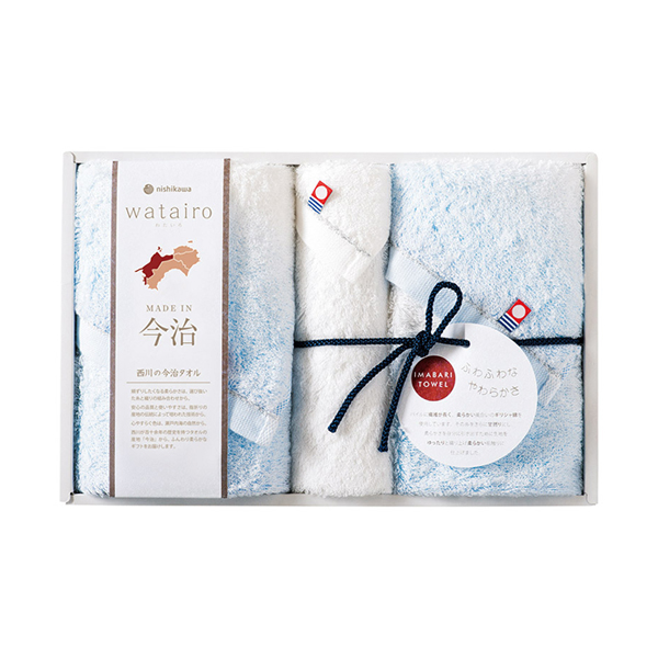 今治の清らかでやわらかな水が今治タオルのやわらかさを引き出し、凹凸感のある独特な風合いが心地よいあぜ織り仕立ての清らかな白波のように美しい純白の今治タオルです。