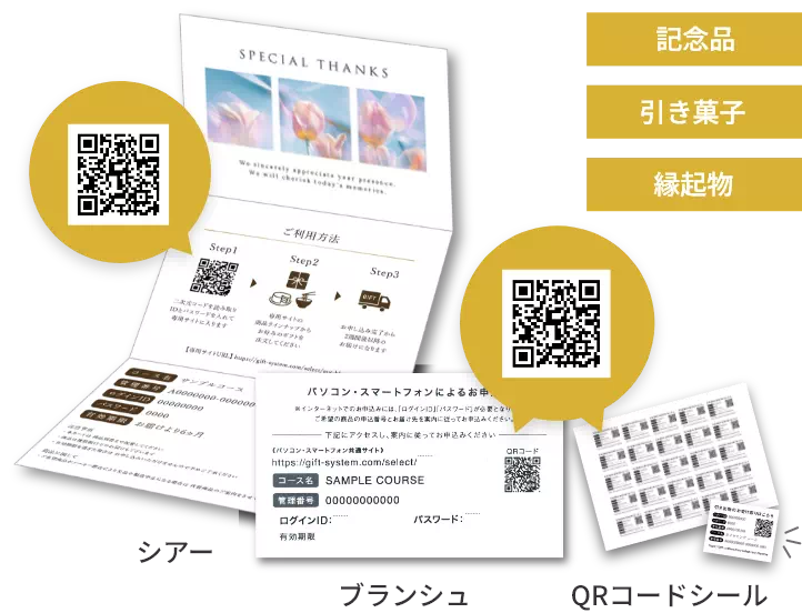 お好みの記念品・引き菓子などを選んでいただける引き出物スタイル。