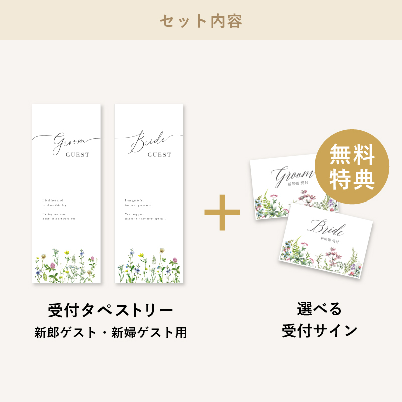 | 無料特典 | 受付サイン1組(新郎用×1組、新婦用×1組) |