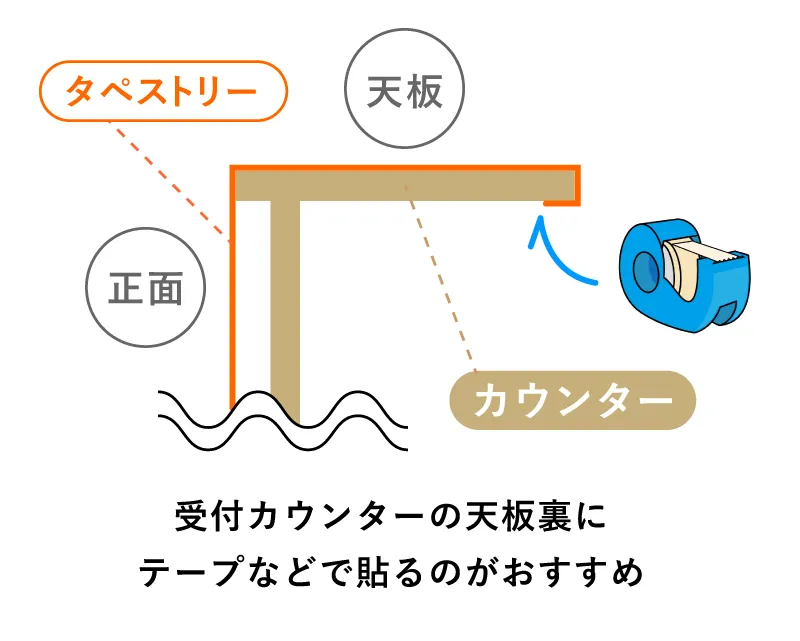 設置の際は受付側のテーブルの淵にテープ等で、固定することをおすすめします。