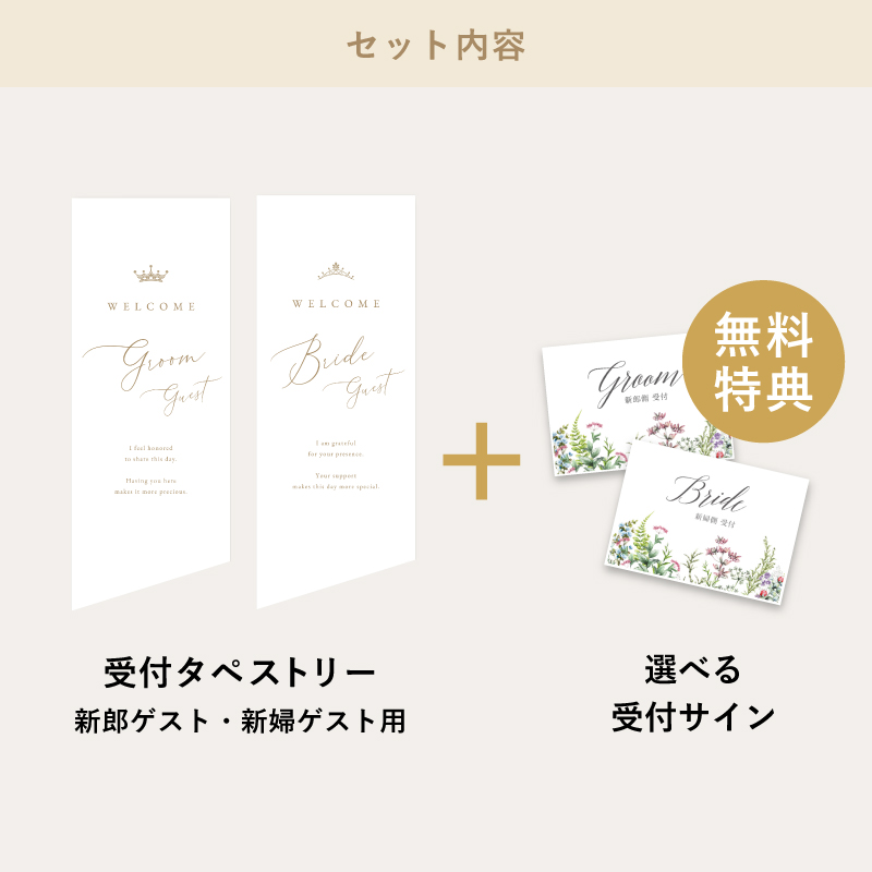 | 無料特典 | 受付サイン1組(新郎用×1組、新婦用×1組) |