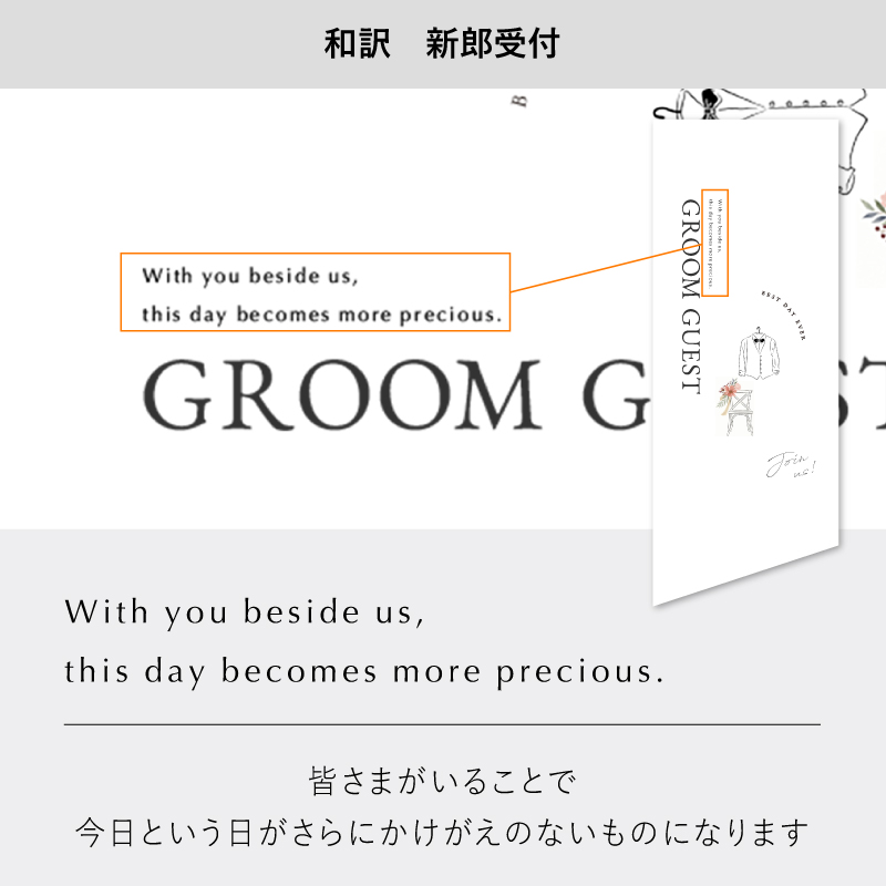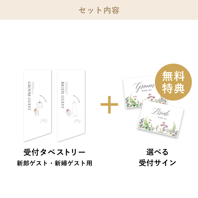 | 無料特典 | 受付サイン1組(新郎用×1組、新婦用×1組) |
