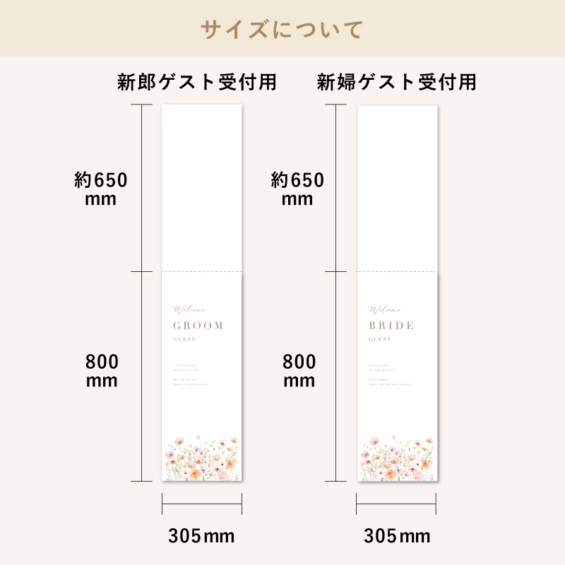 | 内容物 | 受付タペストリー×2枚(新郎・新婦ゲスト用) |