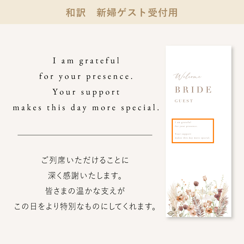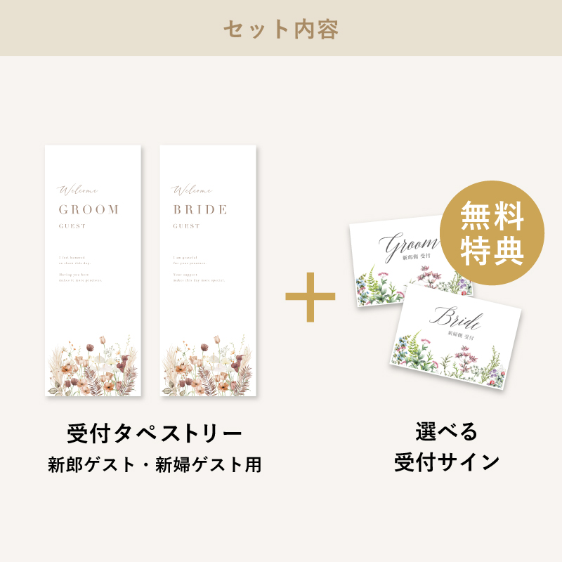| 無料特典 | 受付サイン1組(新郎用×1組、新婦用×1組) |