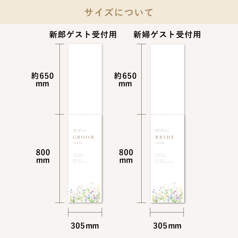 | 内容物 | 受付タペストリー×2枚(新郎・新婦ゲスト用) |