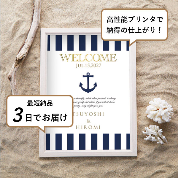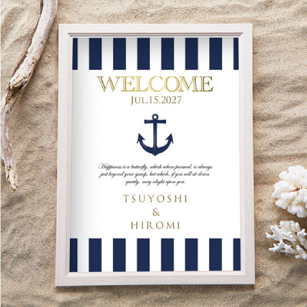 爽やかな潮風と夏を感じるウェルカムボードです。