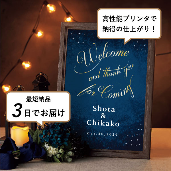 散りばめられた星がおふたりの未来を輝かせてくれるような、素敵なウェルカムボードです。