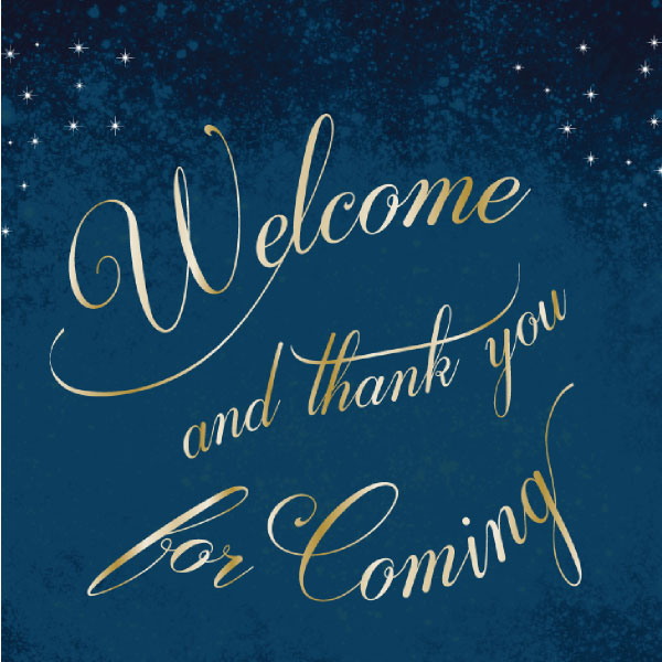 お名前と挙式日が入り、ゴールドに煌めく「WELCOME」の文字でおふたりの代わりにゲストを
