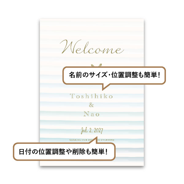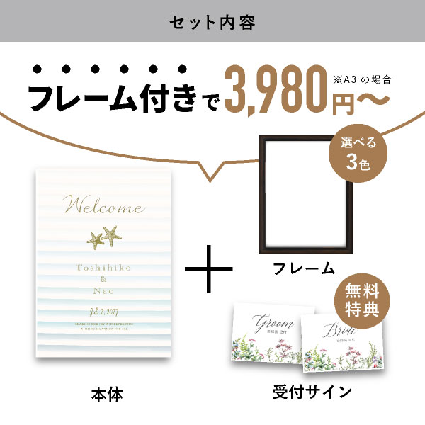 | 無料特典 | 受付サイン1組(新郎用×1組、新婦用×1組) |