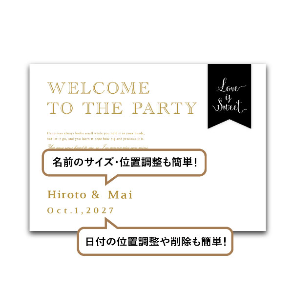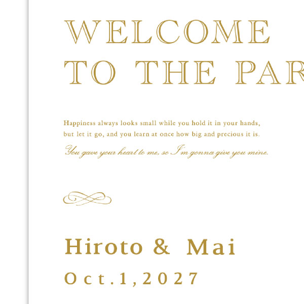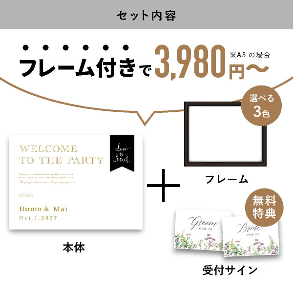 | 無料特典 | 受付サイン1組(新郎用×1組、新婦用×1組) |