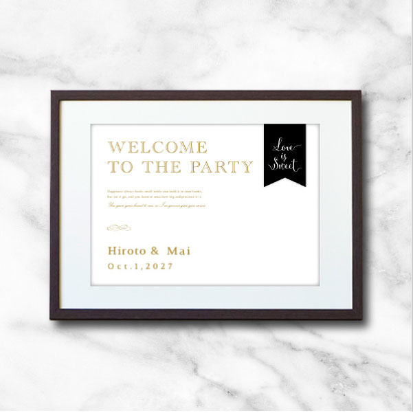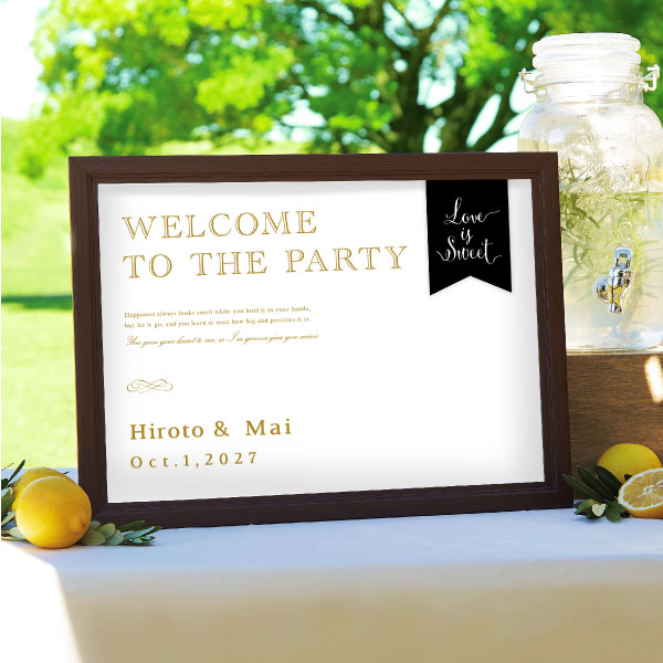 格式高いホワイトをベースに、アーバンなエッセンスをプラスしたモダンで上質な一枚。シンプルながらもカジュアルさを引き立ててくれるウェルカムボードです。